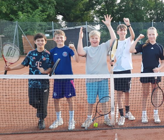Alle sechs Spiele konnten gewonnen werden. Am letzten Spieltag gab es ein souveränes 6:0 beim TC Nieder-Rosbach, das den Meistertitel sicherte. Danach wurde auf der heimischen Anlage gefeiert und mit Kinder-Sekt angestoßen.